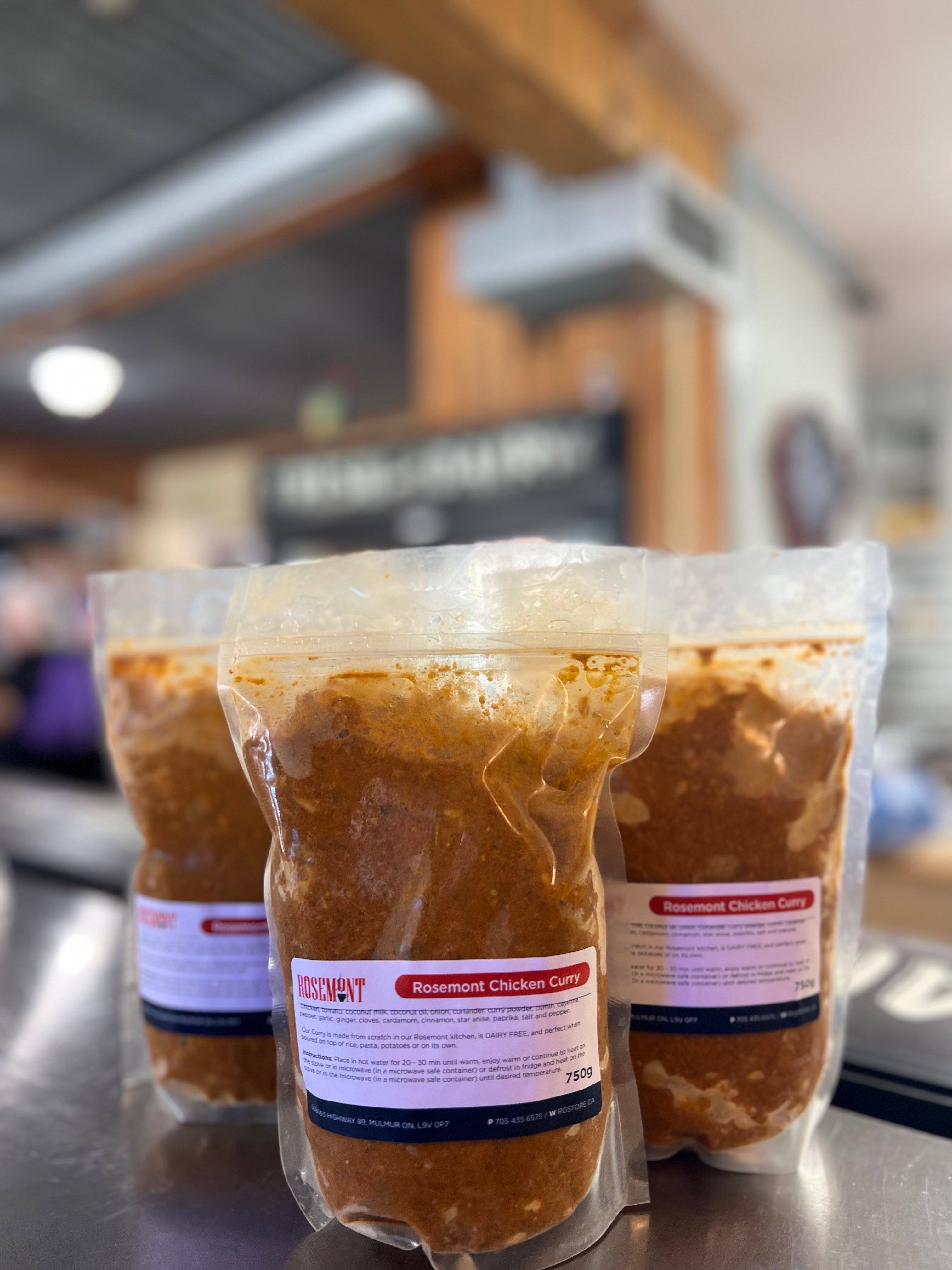 Our Curry is made from scratch in our Rosemont kitchen, is DAIRY FREE, and perfect when poured on top of rice, pasta, potatoes or on its own.