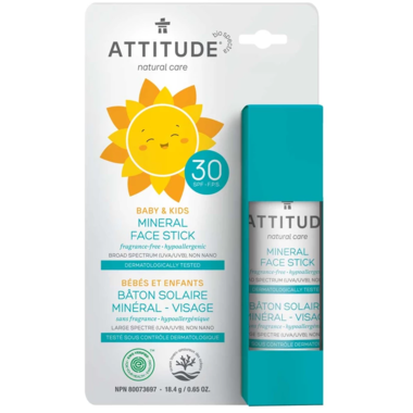 Ever wondered why surfers’ and lifeguards’ noses are often white? It’s because they use a sunblock that contains zinc oxide. ATTITUDE's 100% Mineral Face Stick SPF 30 uses natural ingredients like non-nano zinc oxide, and it offers a SPF 30 protection against UVA and UVB sunlight for the safest possible sun care. This Face Stick is fragrance-free and non-whitening. Olive oil makes an easy and smooth application without getting your hands dirty, while shea and cocoa butter moisturize your skin. The perfect worry-free solution for people on the go!