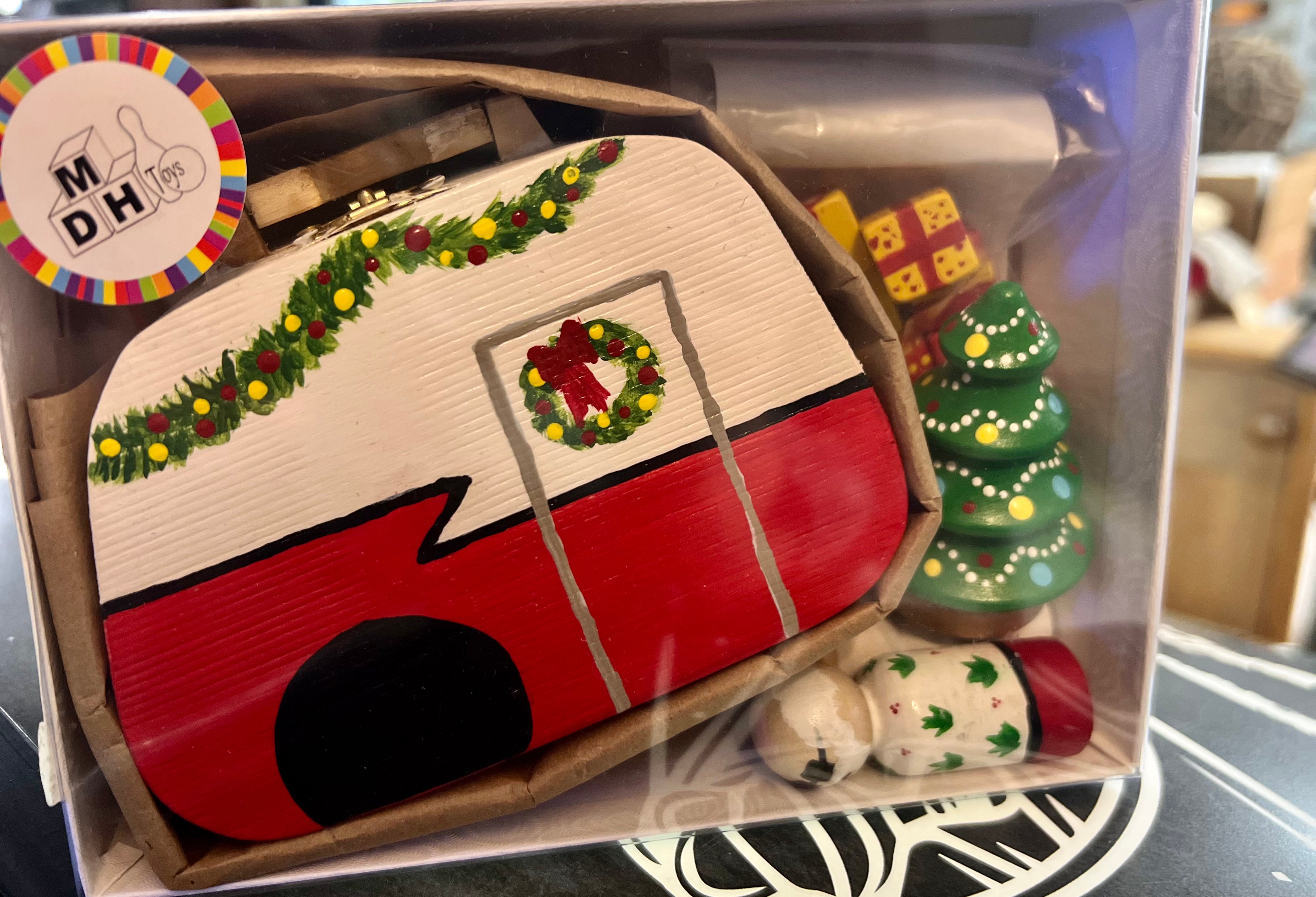 This adorable Christmas caravan is the perfect holiday gift, fabulous for playing (made of solid wood with toxin free paints), displaying over the holidays, and then pack all the pieces away inside of the caravan for safe keeping until next season.